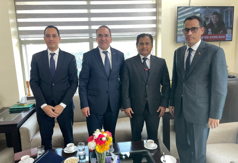 His Excellency Ambassador Mr. Ahmedou Ould Ahmedou met this morning, Thursday, 5 February 2026, with Mr. Mr Sevala Naik Mude, Additional Secretary head of the West and Central Africa Division at the Ministry of External Affairs, at his office. The meeting was held in the presence of the embassy’s counsellors, Mohamed El Mostapha Seydi and Sidi Mohamed Mahfoudh.