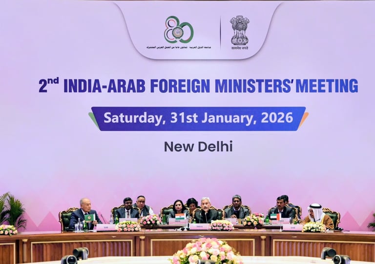 New Delhi hosted the second ministerial meeting of the Arab-Indian Cooperation Forum, held at the Bharat Mandapam complex on Saturday, January 31, 2026, with the participation of several Arab foreign ministers, alongside the Indian Minister of External Affairs and the Secretary General of the League of Arab States.